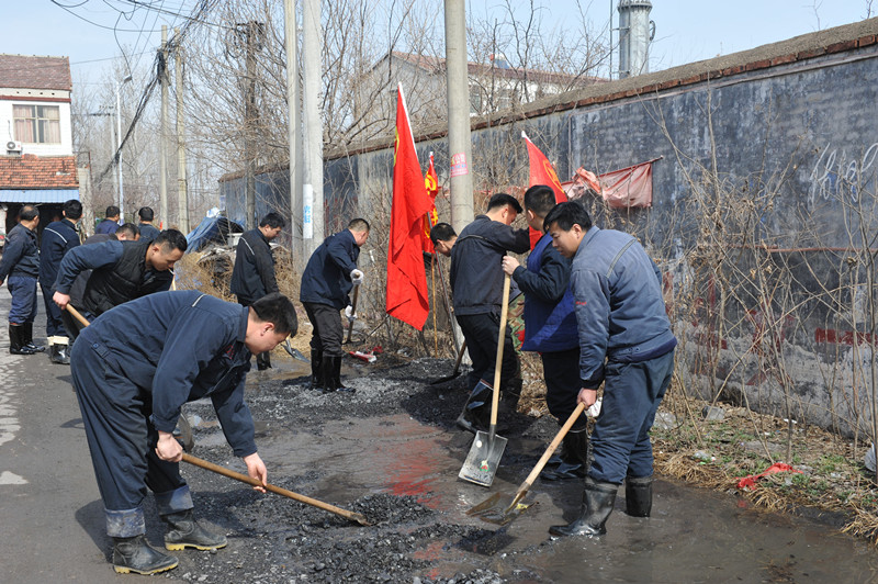 下午1时,志愿者们又自带劳动工具,在通往金威热电厂的公路上掀起一片劳动热潮。此路段因为长年没有维修养护,路面损坏严重,雨天车辆容易陷入坑洼地带,存在一定的安全隐患,志愿者们对此路段进行了碎矸石铺垫,平整了路面,保障了车辆及人员的出行安全 。